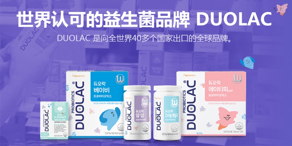 DUOLAC是2010年誕生的CELL BIOTECH益生菌專業(yè)品牌,在韓國藥店,醫(yī)院,中醫(yī)院,免稅店,藥妝店等渠道銷售。DUOLAC作為代表韓國的跨國益生菌品牌,不僅在韓國,在丹麥,法國,芬蘭,新加坡的藥店也銷售。 并且,以至今為止積累下來的的許多研究開發(fā)成果為基礎(chǔ),通過實驗證明的優(yōu)質(zhì)菌株的組合,生產(chǎn)并銷售各年齡段,癥狀而開發(fā)的30多種優(yōu)秀產(chǎn)品。