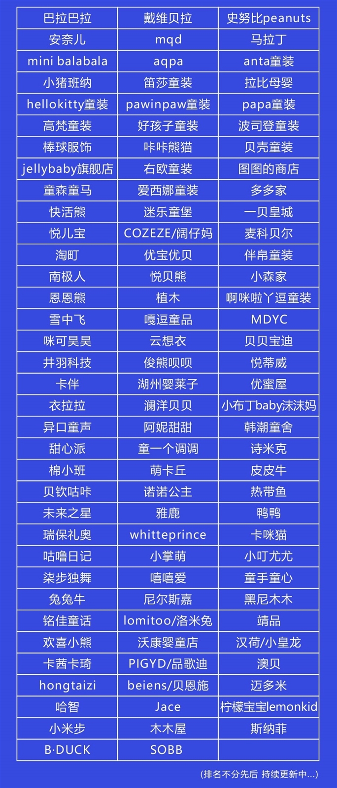 支持協(xié)會(huì):湖州織里童裝電商協(xié)會(huì)、浙江省童裝協(xié)會(huì)、廣東童裝協(xié)會(huì)、溫州童裝商會(huì)、溫州童鞋商會(huì)、東莞虎門童裝協(xié)會(huì)、青島童裝協(xié)會(huì)、中國母嬰玩具協(xié)會(huì)