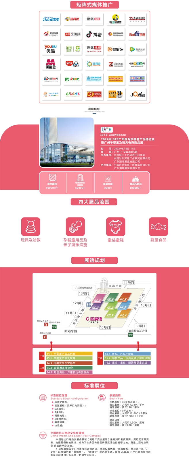 2022年IBTE廣州國際孕嬰童產(chǎn)品博覽會(huì)暨廣州孕嬰童及玩具電商選品展將于2022年5月9日-11日在中國進(jìn)出口商品交易會(huì)展館正式舉辦,立足華南,面向全國及東南亞的國內(nèi)外孕嬰童市場,展會(huì)占地80000平米超過3000+參展企業(yè)。展品包括玩具、孕嬰童服鞋飾、孕嬰童食品、孕嬰童用品四大板塊。展會(huì)由中國輕工工藝品進(jìn)出口商會(huì)、中國對外貿(mào)易廣州展覽有限公司、廣東潮域展覽有限公司聯(lián)合主辦,充分利用豐富的辦展經(jīng)驗(yàn)及多年積累的數(shù)十萬買家資源,打造高起點(diǎn)、高規(guī)格、國際化的孕嬰童展新標(biāo)桿!