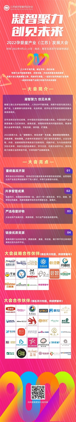 2022 孕嬰童產(chǎn)業(yè) (江蘇) 發(fā)展大會(huì),由江蘇省孕嬰童用品協(xié)會(huì)主辦,以“凝智聚力,創(chuàng)見未來”為主題。新老朋友相聚南京,共敘友情,同繪愿景。既展望行業(yè)未來趨勢(shì)格局, 又共討后疫情時(shí)代母嬰行業(yè)新格局、新消費(fèi)、新模式、新營(yíng)銷……